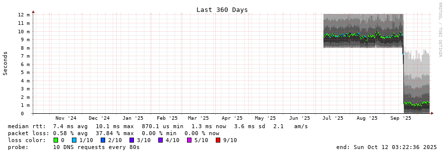 traceroute to 2620:fe::fe (2620:fe::fe), 30 hops max, 80 byte packets - Generated at 2025-10-12 02:15:02