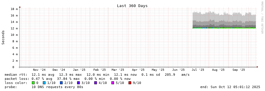 traceroute to 2001:dc3::35 (2001:dc3::35), 30 hops max, 80 byte packets - Generated at 2025-10-12 05:00:01
