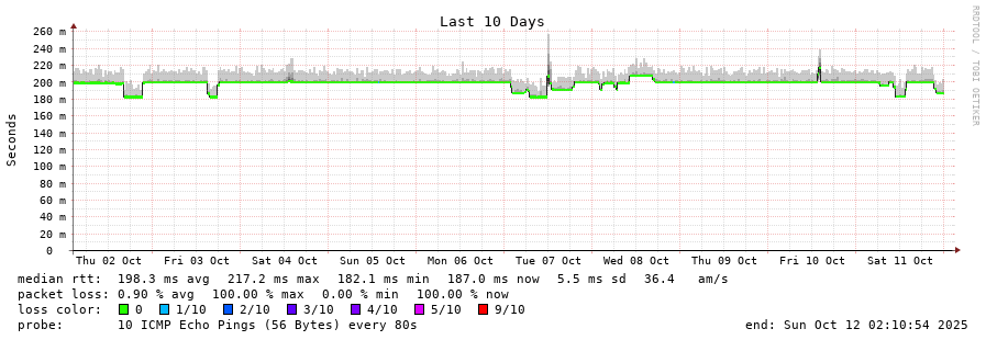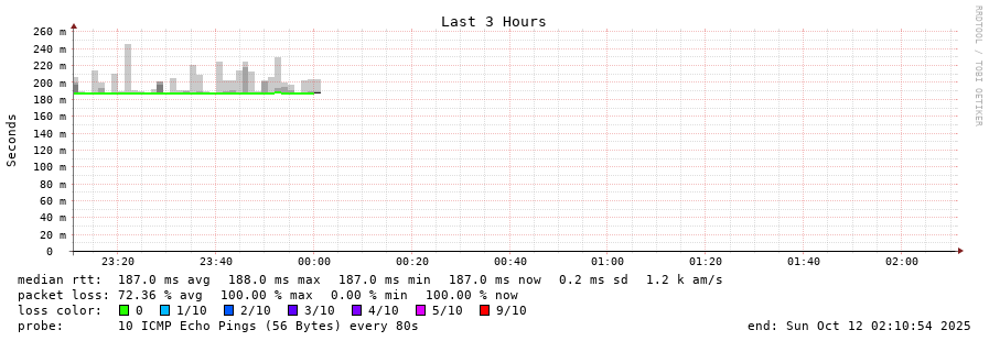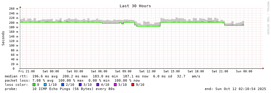 13 > 202.160.6.113 (202.160.6.113) [AS10094] 187.408ms 187.273ms 187.318ms