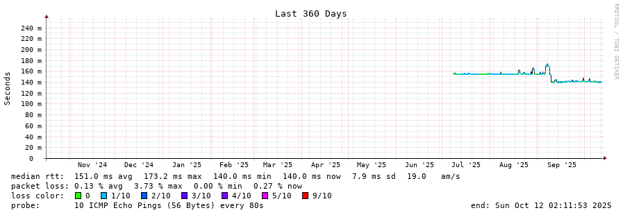 11 > 125.214.191.37 (125.214.191.37) [AS18001] 139.949ms 139.872ms 139.835ms