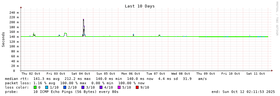 12 > 125.214.191.4 (125.214.191.4) [AS18001] 143.374ms 140.474ms 140.458ms