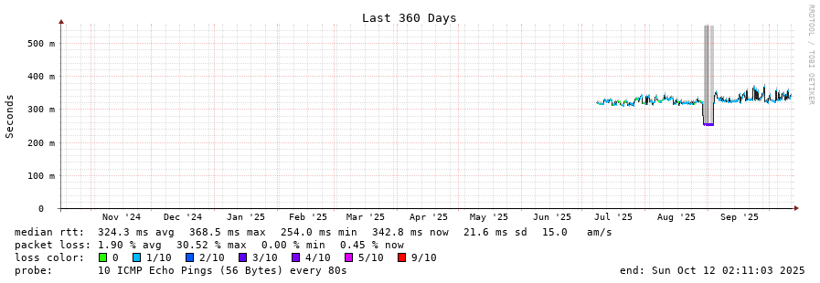 traceroute to 175.176.168.1 (175.176.168.1), 30 hops max, 60 byte packets - Generated at 2025-10-12 01:45:01