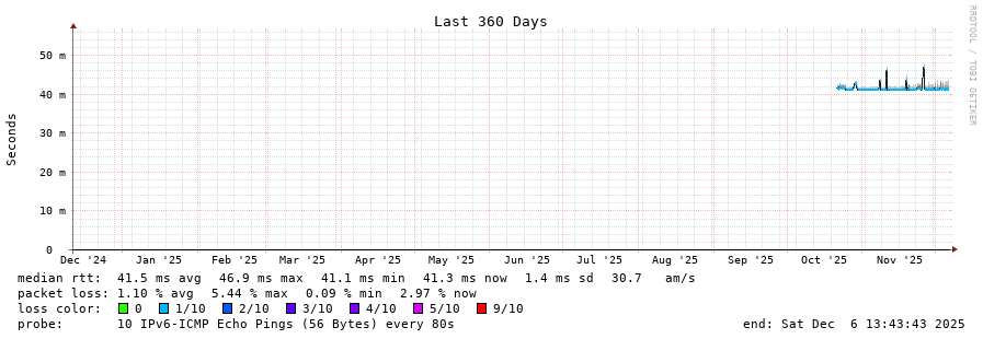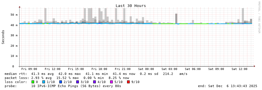 traceroute to 2c0f:5400:2:15::1 (2c0f:5400:2:15::1), 30 hops max, 80 byte packets - Generated at 2025-12-06 13:30:02