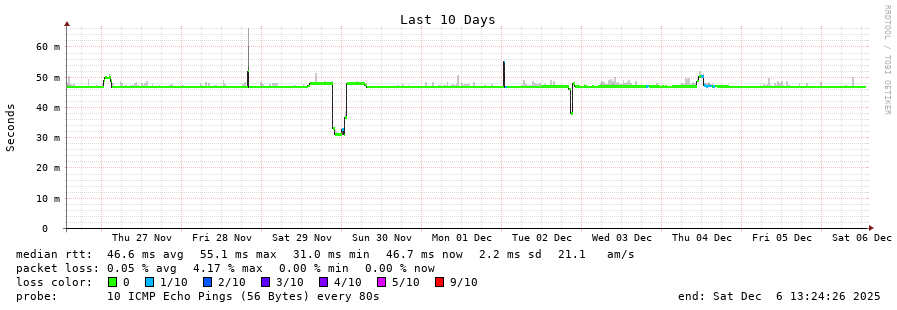 13 > 209.206.20.108 (209.206.20.108) [AS13150] 46.684ms 46.682ms 46.645ms