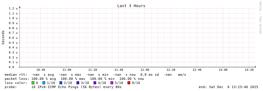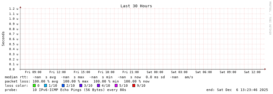 traceroute to fd78:93ae:fdfe::2 (fd78:93ae:fdfe::2), 30 hops max, 80 byte packets - Generated at 2025-12-06 13:15:01