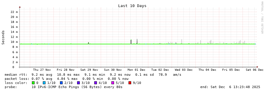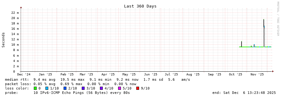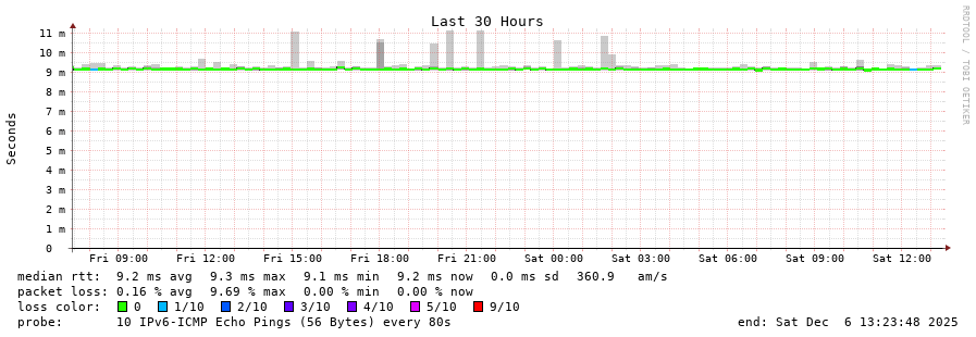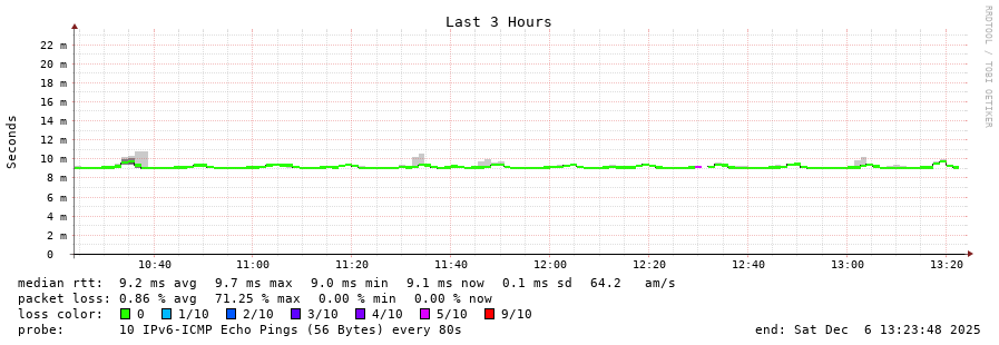 traceroute to 2001:b68:d::28 (2001:b68:d::28), 30 hops max, 80 byte packets - Generated at 2025-12-06 13:15:01