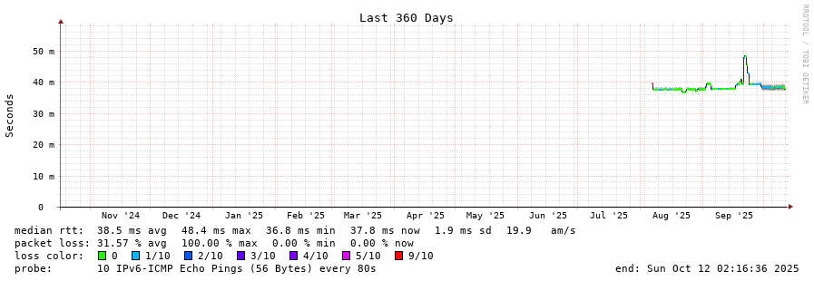 traceroute to 2001:35c0::204:27:68:152 (2001:35c0::204:27:68:152), 30 hops max, 80 byte packets - Generated at 2025-10-12 02:15:02