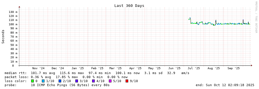 16 > 158.46.224.3 (158.46.224.3) [AS39927] 100.123ms 99.883ms 100.106ms