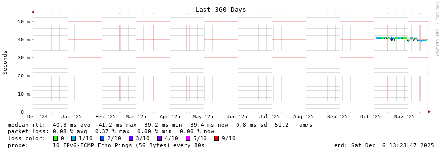 traceroute to 2a0b:2f00:0:234::151 (2a0b:2f00:0:234::151), 30 hops max, 80 byte packets - Generated at 2025-12-06 13:15:01