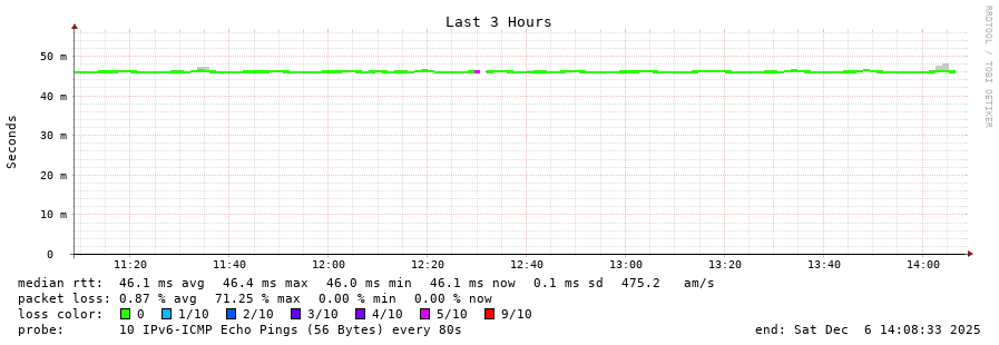 14 > 2001:67c:10:1102::11 (2001:67c:10:1102::11) [AS60149] 46.036ms 46.005ms 45.996ms