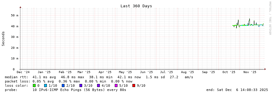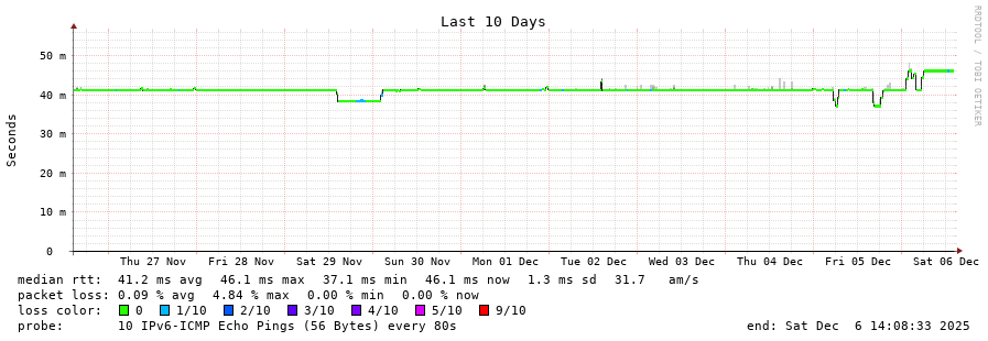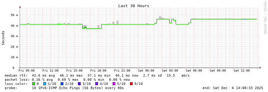 traceroute to 2001:67c:10:1102::11 (2001:67c:10:1102::11), 30 hops max, 80 byte packets - Generated at 2025-12-06 13:15:01