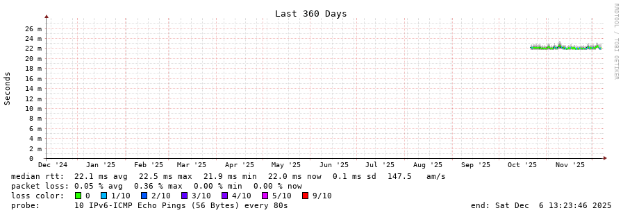 12 > 2a03:bb40:0:1::5 (2a03:bb40:0:1::5) [AS61211] 23.697ms 22.338ms 22.219ms