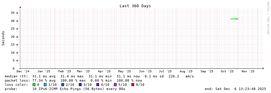 traceroute to 2a02:2f05:2113:7f00:220:4aff:fee0:220f (2a02:2f05:2113:7f00:220:4aff:fee0:220f), 30 hops max, 80 byte packets - Generated at 2025-12-06 13:15:01