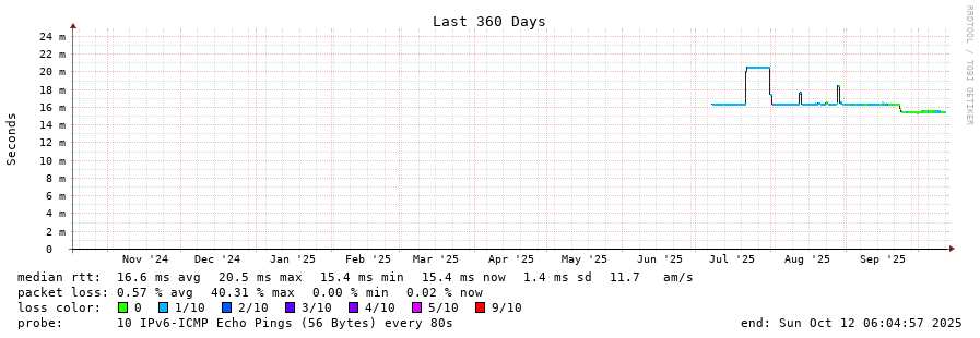 traceroute to proof.ovh.net (2001:41d0:242:d300::), 30 hops max, 80 byte packets - Generated at 2025-10-12 05:00:01