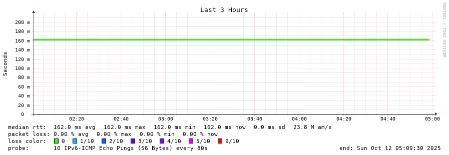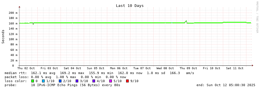 traceroute to 2604:2dc0:202:200::1f9 (2604:2dc0:202:200::1f9), 30 hops max, 80 byte packets - Generated at 2025-10-12 04:45:01