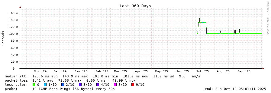 traceroute to 142.44.208.99 (142.44.208.99), 30 hops max, 60 byte packets - Generated at 2025-10-12 05:00:01