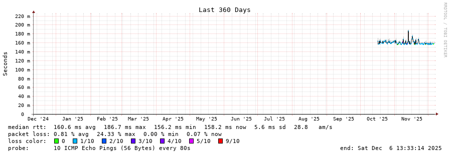 traceroute to 186.148.160.53 (186.148.160.53), 30 hops max, 60 byte packets - Generated at 2025-12-06 13:30:02