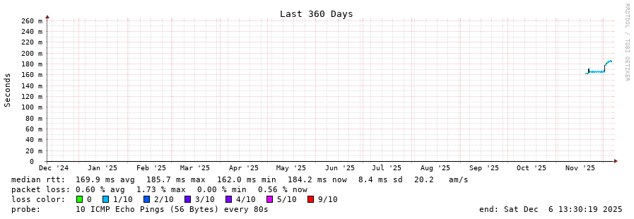 traceroute to 168.232.148.1 (168.232.148.1), 30 hops max, 60 byte packets - Generated at 2025-12-06 13:15:01