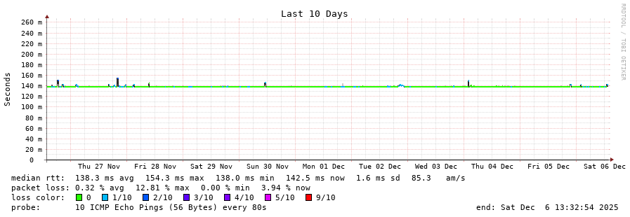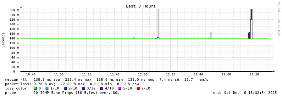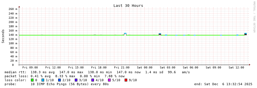 12 > 8.243.248.218 (8.243.248.218) [AS3356] 137.577ms 137.518ms 137.525ms