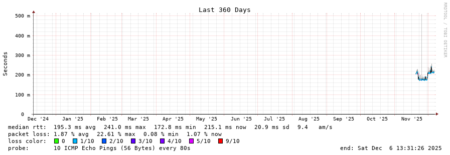 traceroute to 167.249.147.96 (167.249.147.96), 30 hops max, 60 byte packets - Generated at 2025-12-06 13:15:01