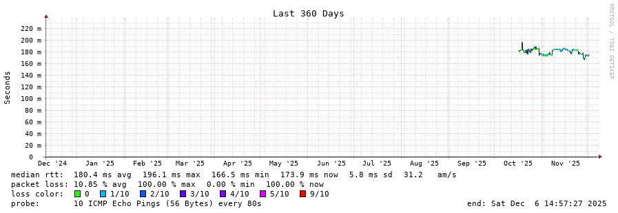 traceroute to 190.14.227.10 (190.14.227.10), 30 hops max, 60 byte packets - Generated at 2025-12-06 13:15:01 3 > 4 > 5 > 6 > 7 > 8 > 9 > 10 > 11 > 12 > be7809.rcr21.mil01.atlas.cogentco.com (149.6.152.244) [*] 1.061ms !N