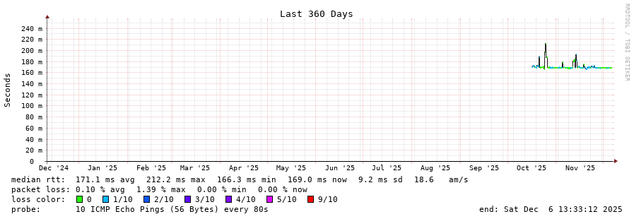 traceroute to 130.250.228.10 (130.250.228.10), 30 hops max, 60 byte packets - Generated at 2025-12-06 13:30:02