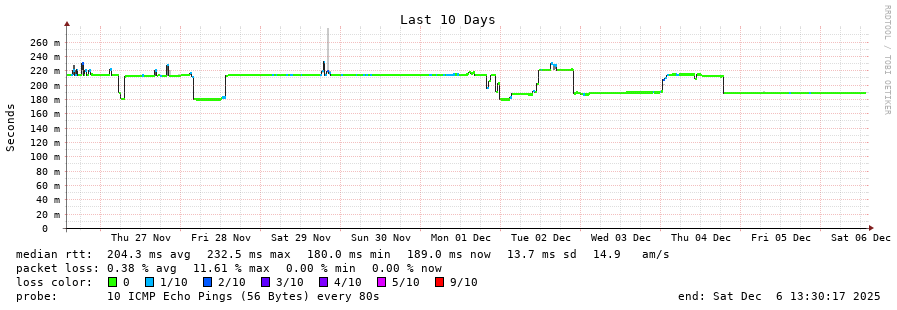 13 > 200.25.36.27 (200.25.36.27) [AS7195] 187.105ms 186.557ms 186.578ms