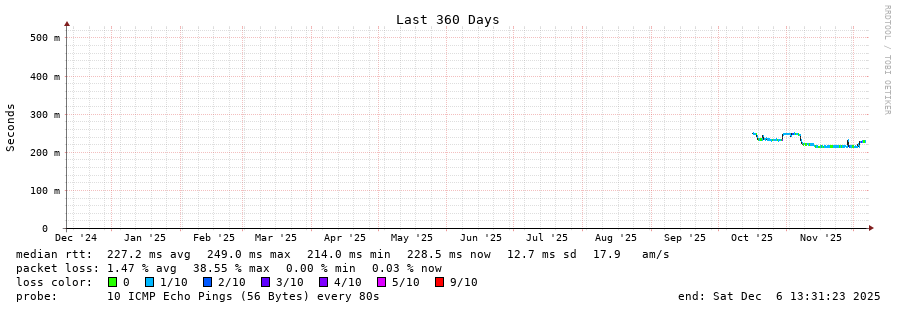 12 > 186.192.158.25 (186.192.158.25) [AS22356] 199.077ms 199.112ms 199.168ms