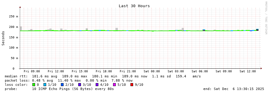 10 > globenet.ftlza.br.as52320.net (200.16.69.3) [AS52320] 187.356ms 187.433ms 187.401ms