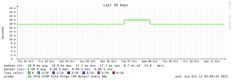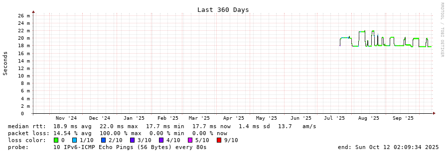 traceroute to 2001:49f0:d0b0:6::2 (2001:49f0:d0b0:6::2), 30 hops max, 80 byte packets - Generated at 2025-10-12 01:45:01