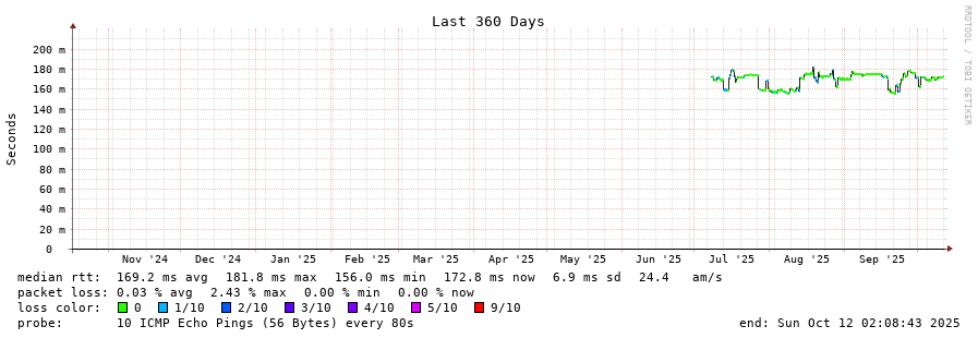 traceroute to 135.84.178.7 (135.84.178.7), 30 hops max, 60 byte packets - Generated at 2025-10-12 01:45:01