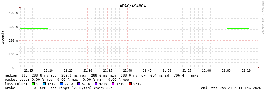44. Max Roundtrip Time 0.289 seconds